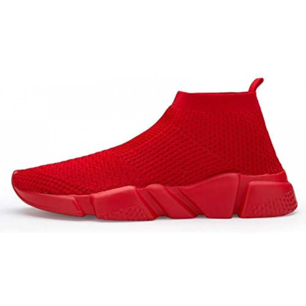 Men's Running Shoes Breathable Knit Slip On Sneakers Lightweight Athletic Shoes Casual Sports Shoes Red