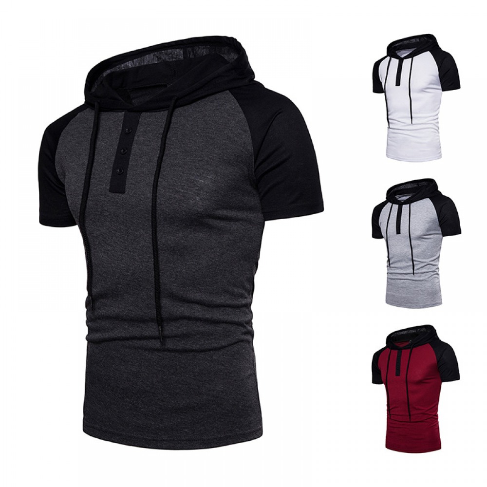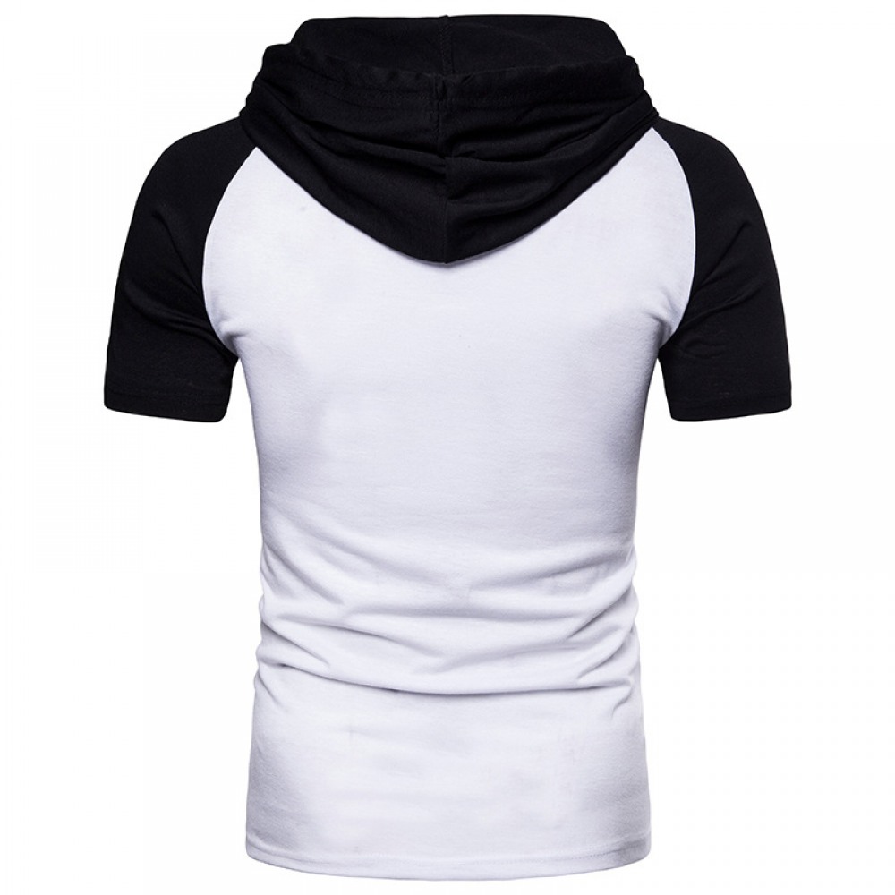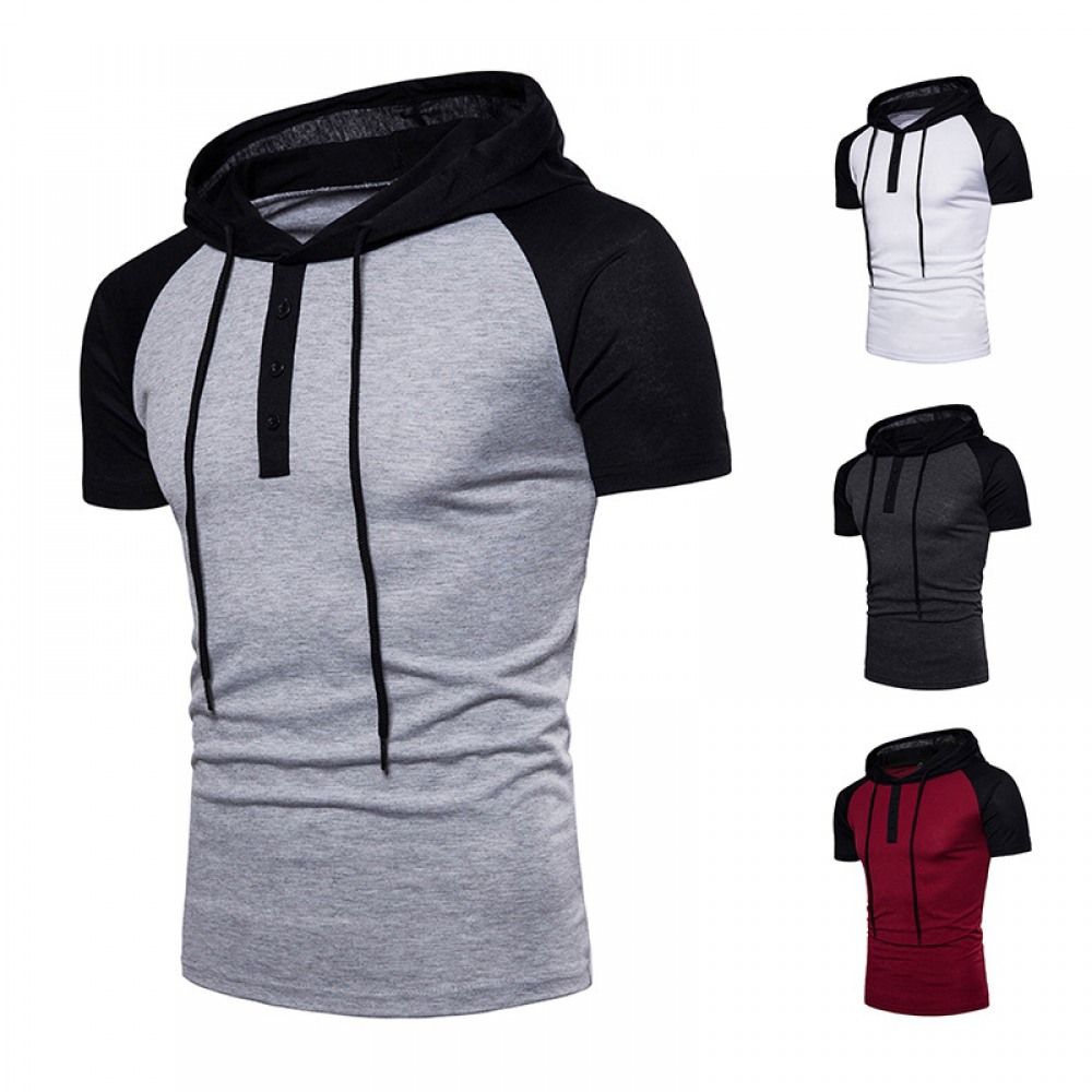 New Plus Size Raglan Sleeves Hooded Placket Color Matching Short-Sleeved Hooded T-Shirt
