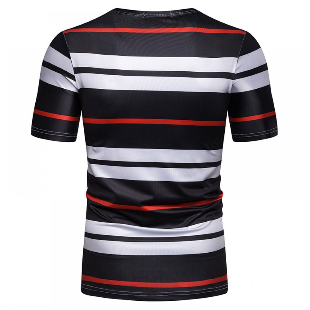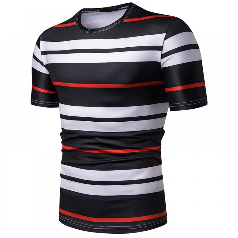 New Summer Men's Short-Sleeved T-Shirt Mens Contrast Striped Slim Casual T-Shirt