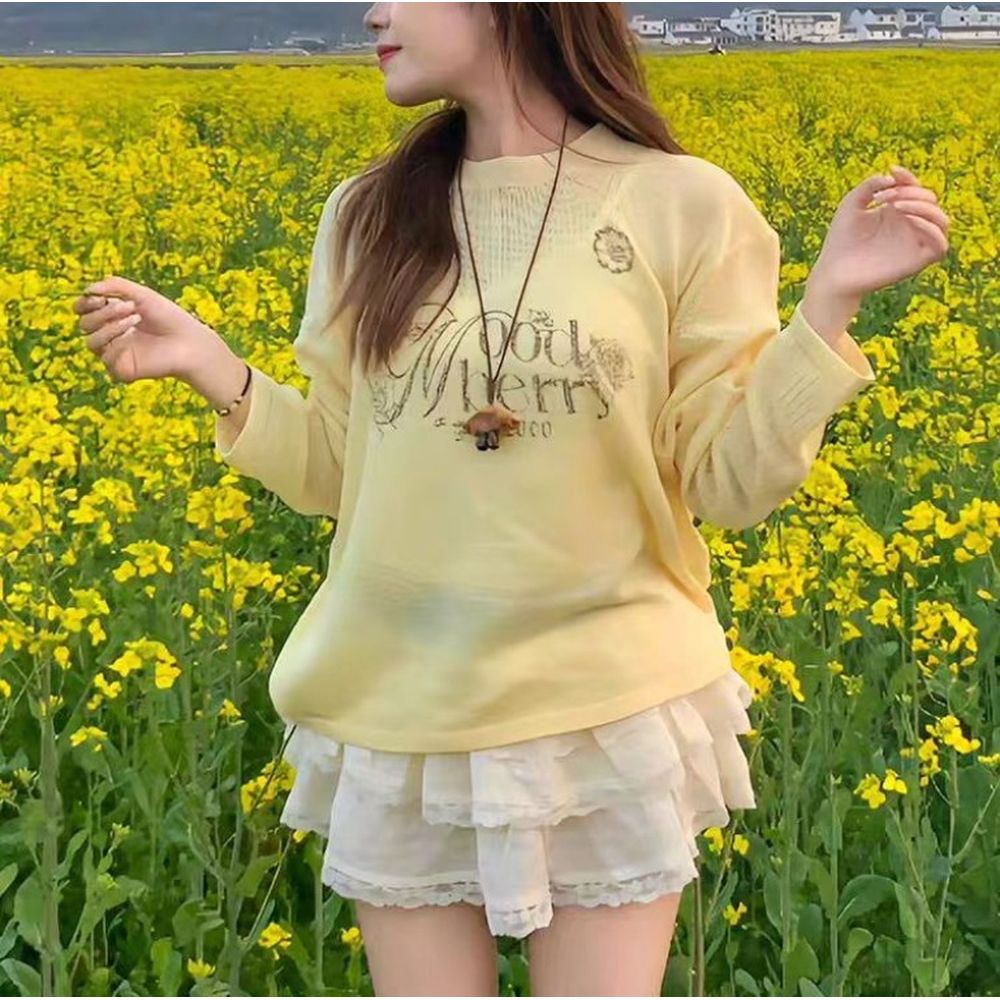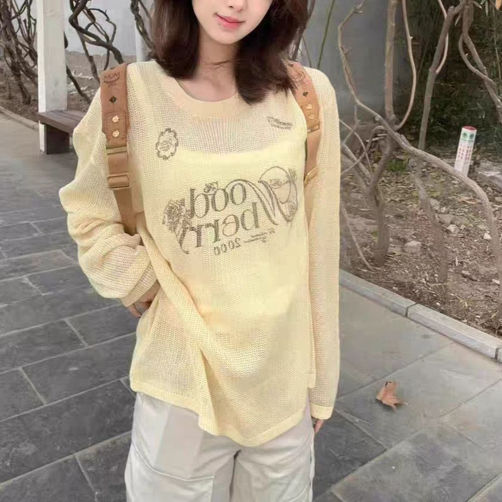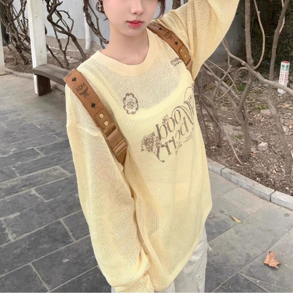 Retro Hollow Knitted Long-Sleeved T-Shirt For Women