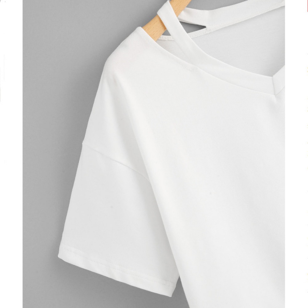 Summer New V-Neck Pineapple Applique Short Sleeve T-Shirt