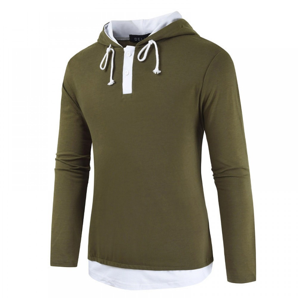 Fashion Sweater New Men's Fashion Street High Street Style Two-Piece Hooded Drawstring Long-Sleeved T-Shirt
