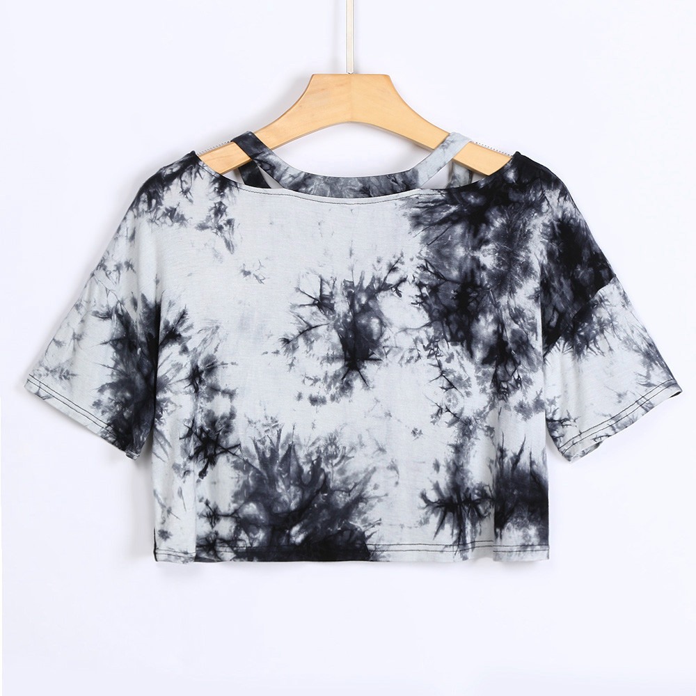 Ink Printing Gradient Mercerized Cotton V-Neck Short T-Shirt