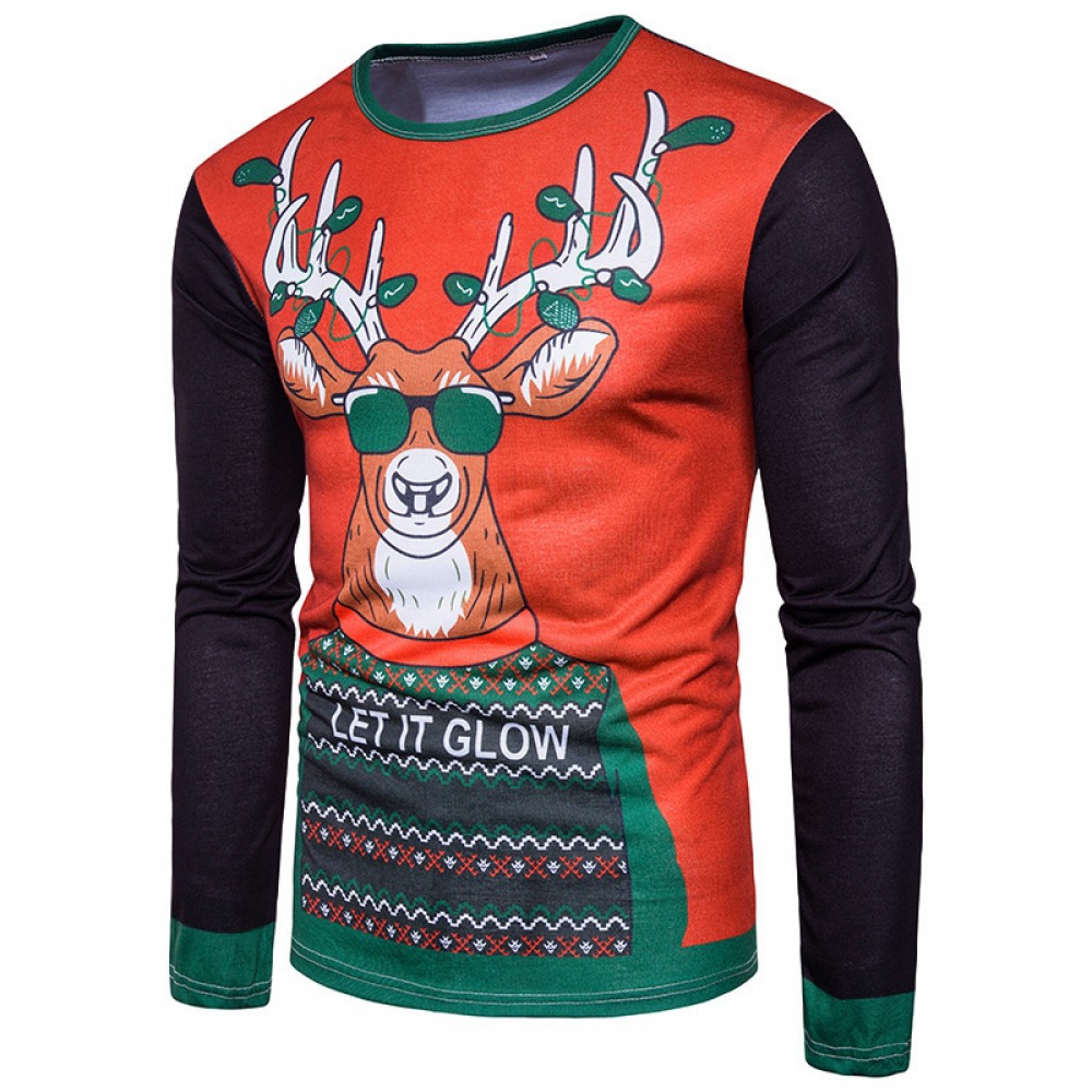 New 3D Personality Printing Fashion Men's Christmas Elk Pattern Long-Sleeved T-Shirt