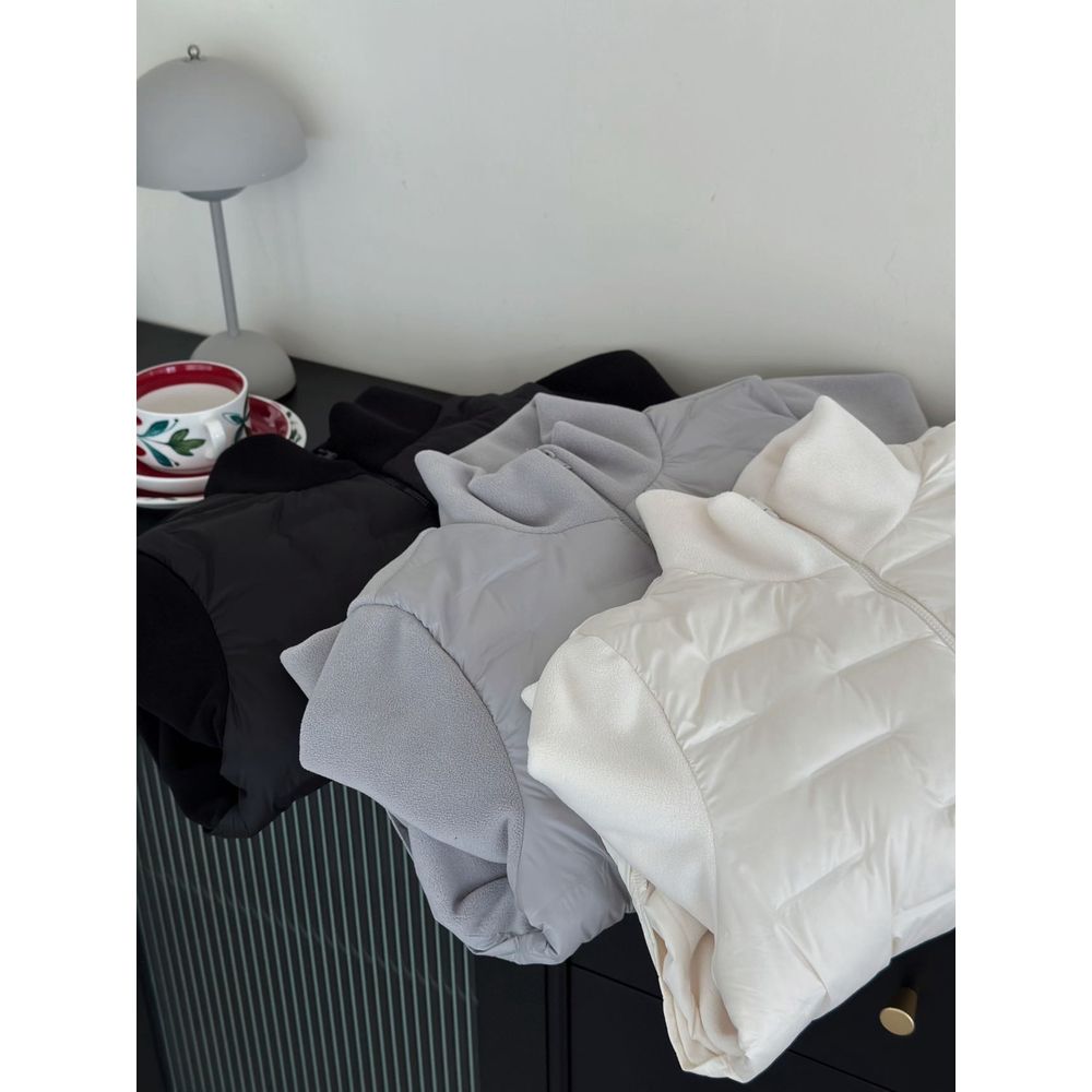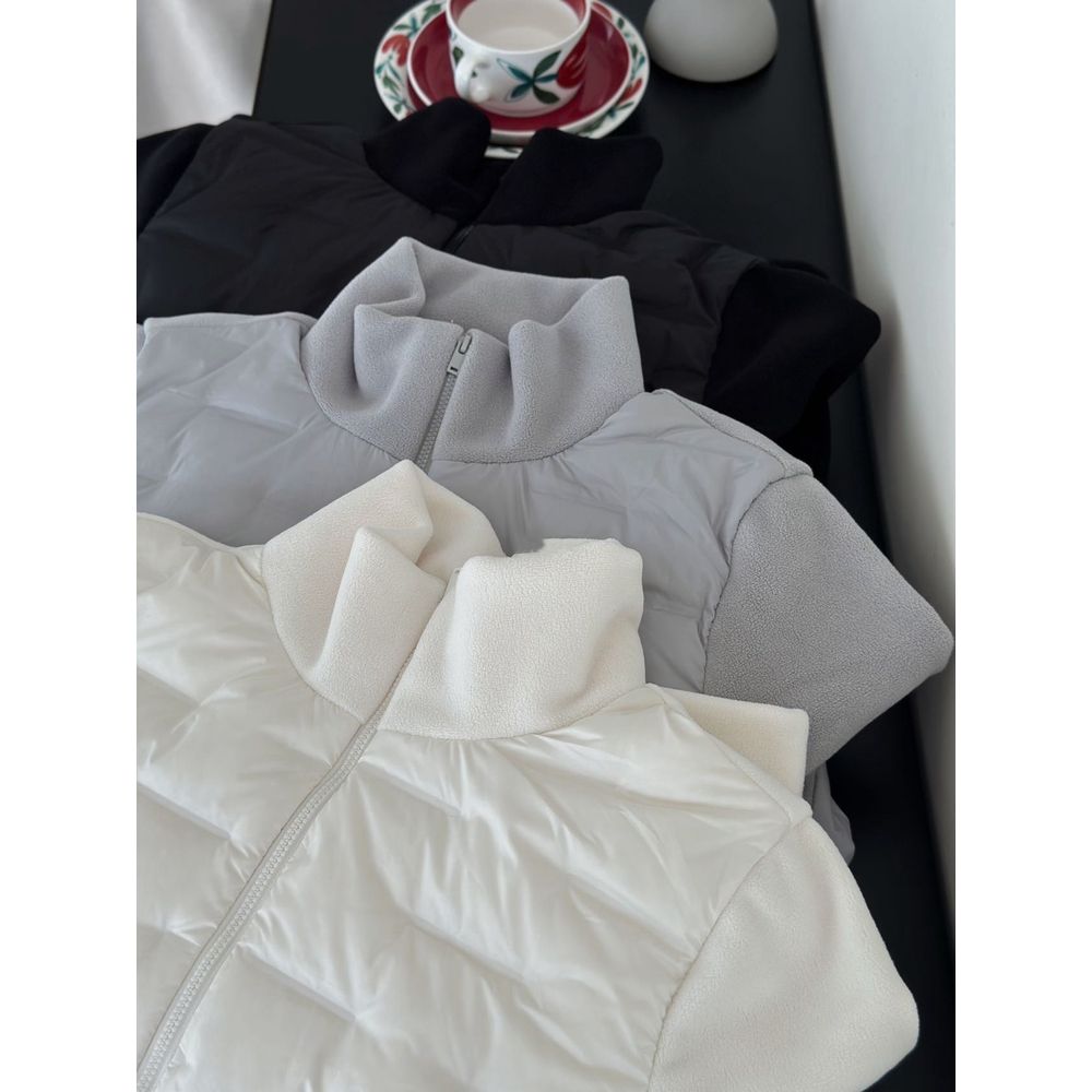 Women's Casual Stitching Polar Fleece Stand Collar Double Zipper Light Down Jacket