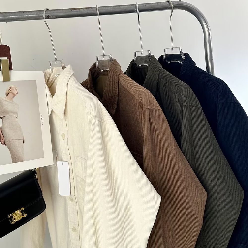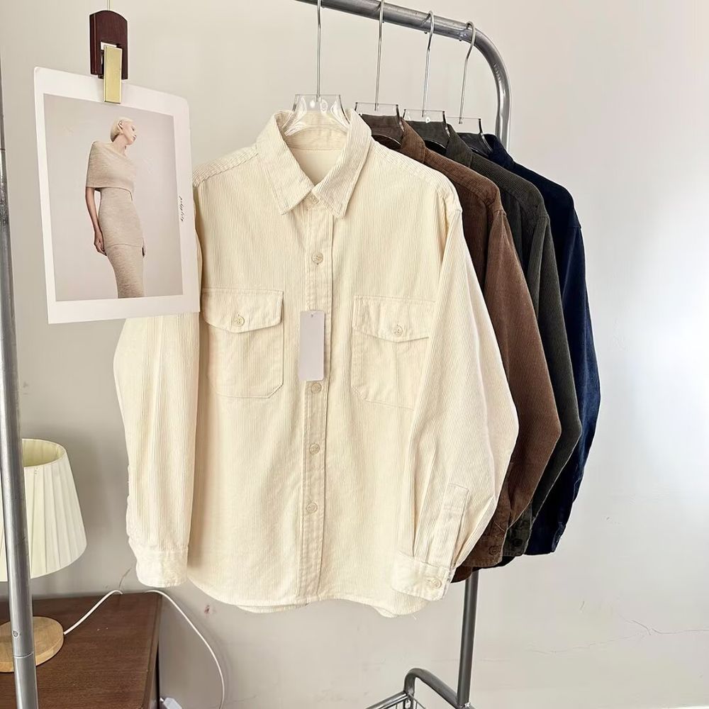 Women's Vintage Corduroy Work Shirt Long Sleeve Jacket